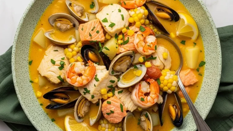 This seafood chowder recipe features shrimp, scallops, and fish in a creamy, rich broth. Simple, comforting, and ready in under an hour.