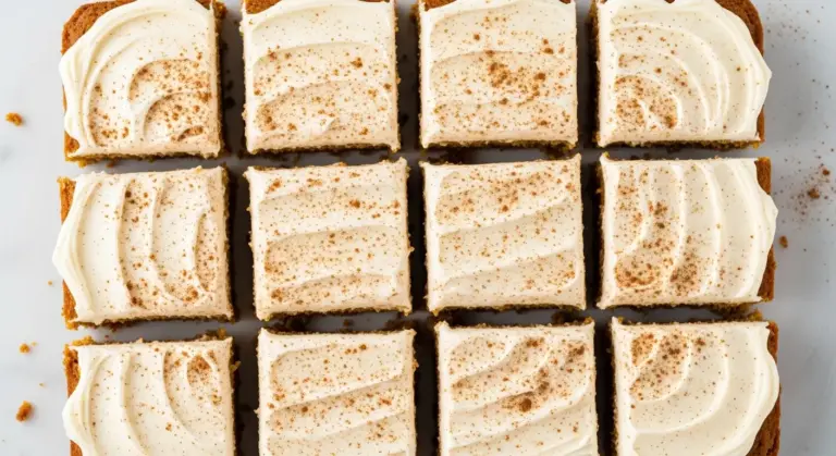 This pumpkin bar recipe is soft, moist, and loaded with warm fall spices, topped with a dreamy cream cheese frosting. Easy to make and perfect for sharing!