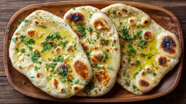 Easy naan bread recipe with yogurt and simple ingredients. Soft, fluffy flatbread ready in 90 minutes. No tandoor needed, just a hot skillet.