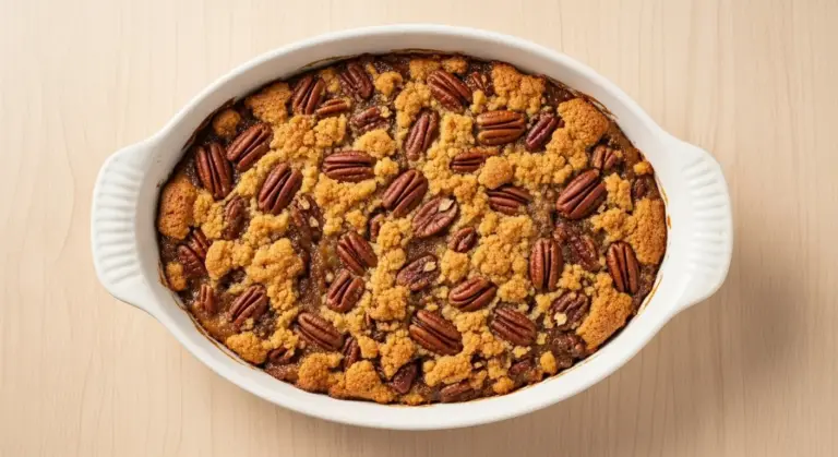 This easy pecan pie dump cake recipe features gooey pecan filling and buttery cake topping. Simple to make, perfect for holidays, and ready in under an hour!