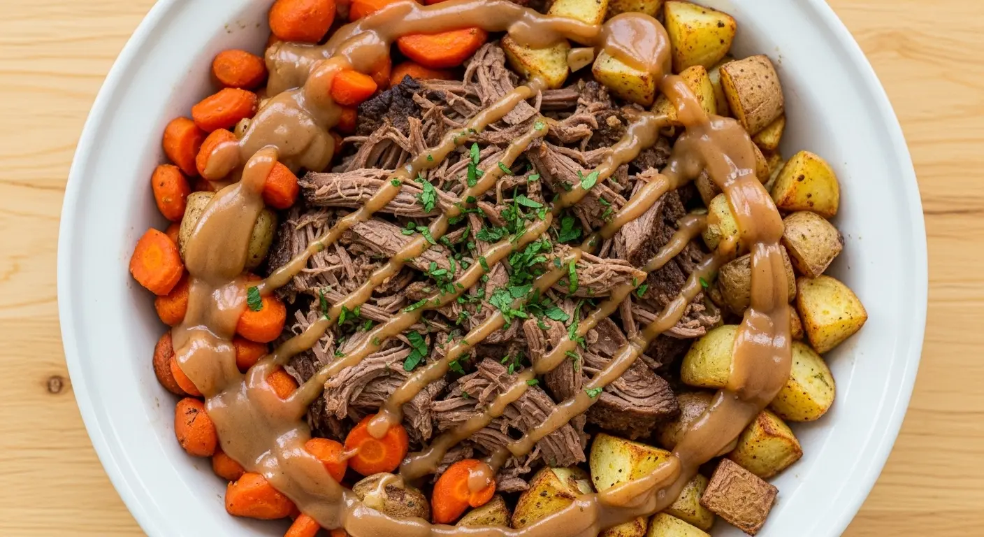 The combination of tender, shreddable beef, hearty vegetables, and a rich, spoonable gravy is pure comfort food at its finest.