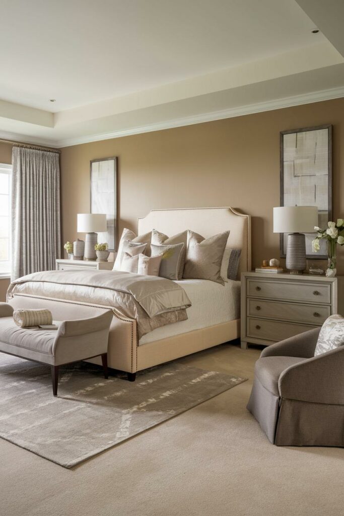 3. Beige and Grey Harmony Transitional Bedroom Design